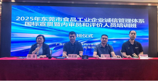 5月22-23日,由广东省南方食品医药行业评估中心(以下简称“评估中心”)和东莞市工业和信息化局联合主办的“2025年第一期食品工业企业诚信管理体系内审员和评价人员培训班”在东莞成功举办,来自东莞、广州、深圳、珠海、中山、江门、湛江、惠州、茂名、阳江等地食品企业及相关机构100余人参加了培训。广东省食品医药行业联合党委书记、广东省食品行业协会常务副会长曾祥云、东莞市工业和信息化局总工程师钟若鹏应邀出席开班仪式并发表讲话,东莞市工业和信息化局消费品工业科科长黎晓红、东莞市道滘镇商务局局长梁进祥应邀出席开班仪式。
