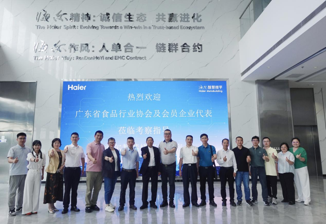 6月27日,广东省食品行业协会创会会长张俊修、广东省食品医药行业联合党委书记曾祥云、广东省食品行业协会会长冯立科携燕塘乳业、名花香料、东鹏饮料、珠江桥生物、潮庭食品、天地壹号、津威饮料、远大包装科技等食品饮料及相关包装设备企业代表齐聚青岛,开启了一场深度考察之旅。考察团先后走进全球首批“灯塔工厂”和绿色建筑高效机房,参观了海尔智慧楼宇展厅,实地感受海尔在智能制造与节能技术领域的创新实践,海尔智慧楼宇中国区总经理王晓强、食品行业总经理王志亮等参与,双方对企业发展进行了深度交流,共同为食品饮料行业的绿色智慧发展之路出谋划策。