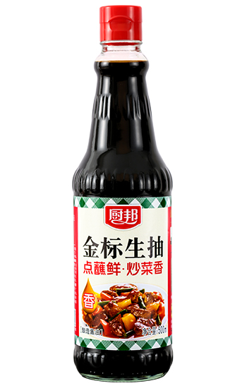 厨邦金标生抽精选东北非转基因大豆、优质小麦,采用南派高鲜酱油工艺酿造而成,日晒夜露,晒足180天,充分发酵,呈现原原本本自然晒出的味道。炒菜豉香扑鼻、点蘸鲜咸适中。满足大众的多种菜式需求,点蘸、凉拌、清蒸、热炒,怎么吃都好吃。优质原料,老传统工艺,加上厨邦独创的五步品控法,从原料到成品,严格控制品质,为消费者提供最优质的产品。