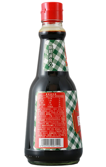 厨邦酱油传承百年南派酱油老传统酿造工艺,精选非转基因东北整粒大豆和优质面粉发酵,日晒夜露,晒足180天,晒出美味晒出鲜。提取品质优良的头道原油,氨基酸含量高达1.3g/100ml,比国家一级标准高85%。色泽鲜艳,清亮有光泽,酱香浓郁,豉香扑鼻,味道鲜美,鲜咸适口。适合炒菜、点蘸、凉拌、清蒸、焖煮等多种用途。秉承厨邦讲良心,产品更放心的准则,生产过程采用全自动高洁灌装生产线,厨邦5步品控法,全程质检,品质有保证,用心酿造好酱油。