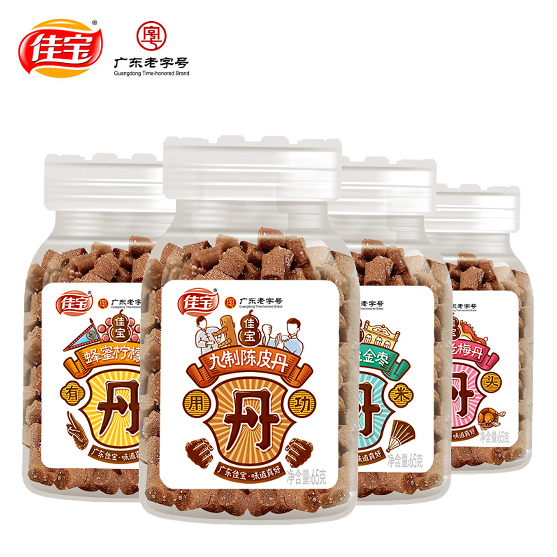 佳宝九制陈皮丹精选两种原材料-陈皮、山楂。陈皮,采用优质的干橘皮为原料,经过人工筛选、清洗、干燥制成气味清香,味道甘甜的陈皮原料,具有理气健脾,燥湿化痰的作用,其中富含的橘皮苷,具有可降低毛细血管通透性,防止微细血管出血;能拮抗组胺、溶血卵磷脂引起的血管通透性增强;能增强纤维蛋白溶解、抗血栓形成;并有利胆作用。山楂,采用优质圆润饱满,酸甜可口的山楂原料,具有助消化、降血脂、抗动脉粥样硬化,抗氧化,扩张血管、降血压,抗心肌缺血、抗脑缺血,改善心脏功能,降血糖,增强免疫功能,抗应激,抗肿瘤,止泻等药理作用。