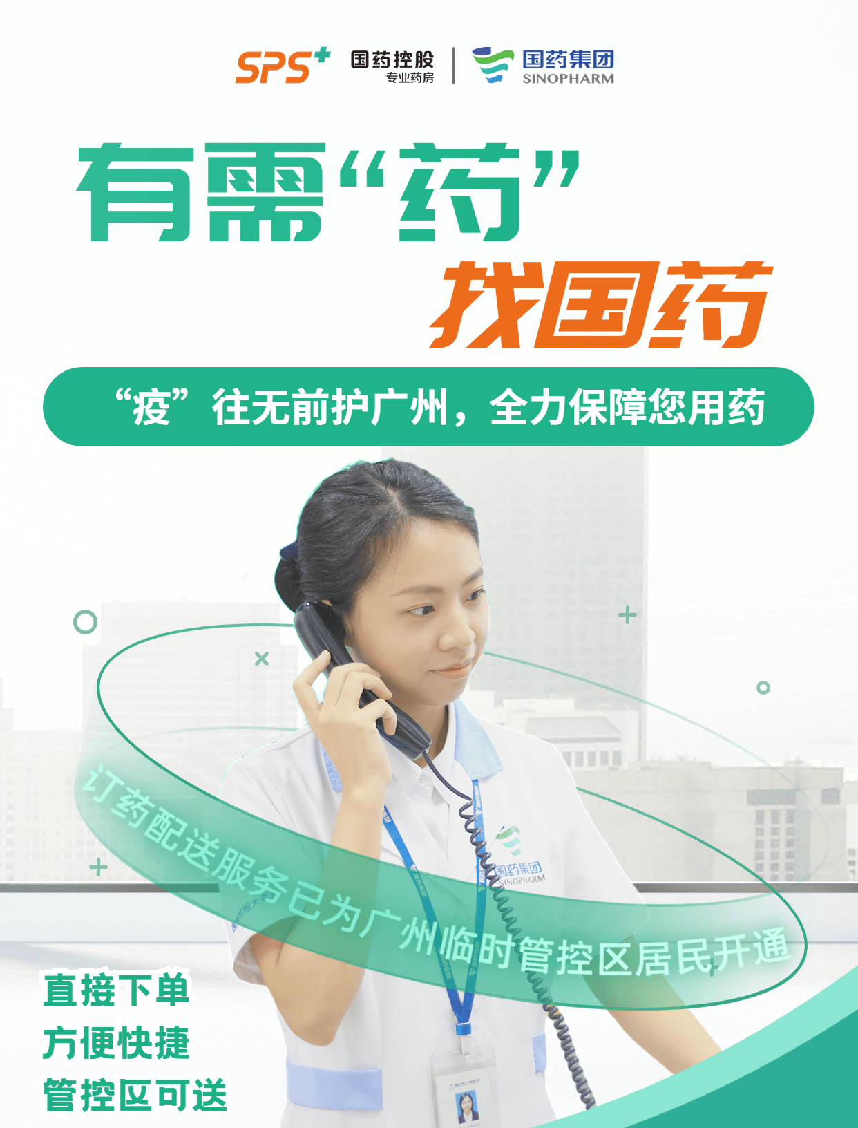 当前,广州疫情处置正处于关键阶段,社会面出现多个散发病例,疫情防控之路任重而道远。国药控股广州有限公司旗下的国药控股专业药房、国药物流与驻点医务组展开合作,为管控区居民提供线上订药购药、送药上门和用药指导等专业有温度的药事服务。