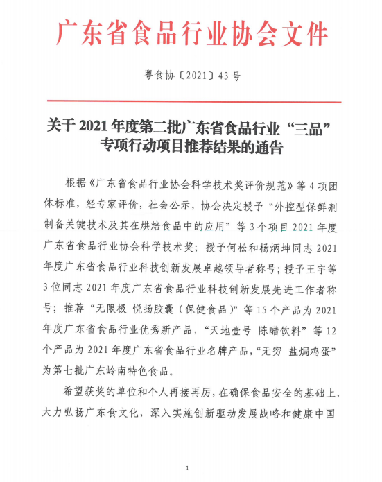 关于2021年度第二批广东省食品行业伟德国际手机1946项目推荐结果的通告