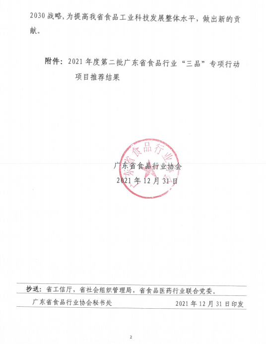 2021年度第二批广东省食品行业伟德国际手机1946项目推荐结果