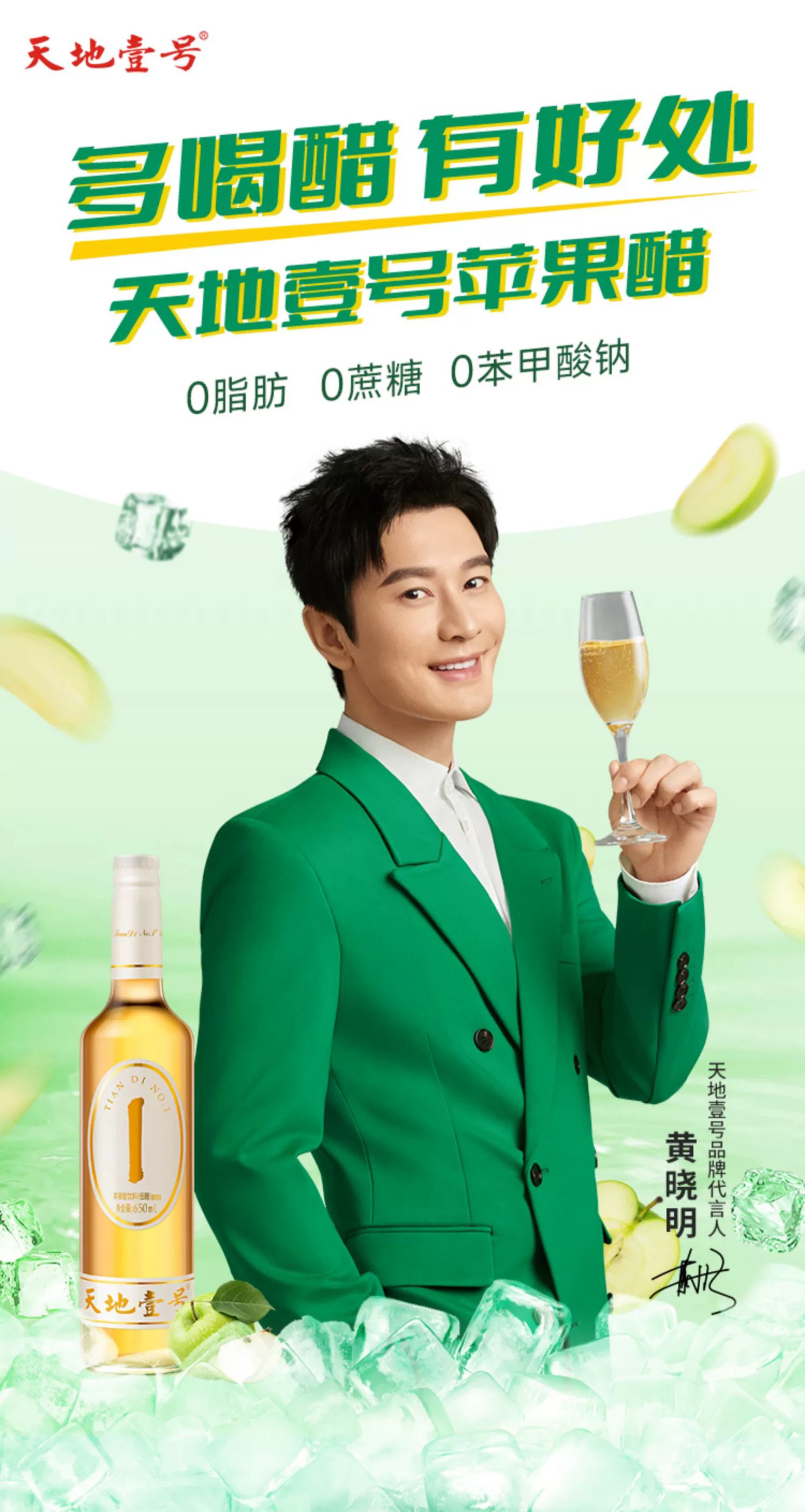 天地壹号铂金版苹果醋饮料采用优质苹果汁为主要原料,通过高酸度果醋发酵技术,得到酸度7%以上的苹果原醋,将水果富含的维生素、矿物质、氨基酸等营养成分在果醋中保留了下来。再以甜菊糖苷、低聚半乳糖等关键原料以及蜂蜜、二氧化碳等辅料,调配成苹果醋饮料,口感清爽,酸甜可口,苹果香味浓郁,不仅在营养、风味、口感上都比传统食醋更佳,同时利用低聚半乳糖的肠道改善功能和果汁果醋的营养补充等综合作用,达到更好的保健作用,具有水果兼食醋的营养保健功效,是集营养、保健、食疗等功能为一体的低糖低热量饮品。铂金版苹果醋饮料具有创新性,使用了植物糖(甜菊糖),代替传统饮料添加的蔗糖和白砂糖,热量相对更低,是定位更高端、更健康的佐餐饮料。